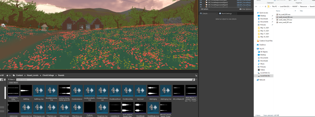 With the sound settings sorted and tested. I went and finally added music and ambience to the clock cottage level. There is still boss music missing, but good music is hard to find. For now it has nice flute tunes and nature sounds.