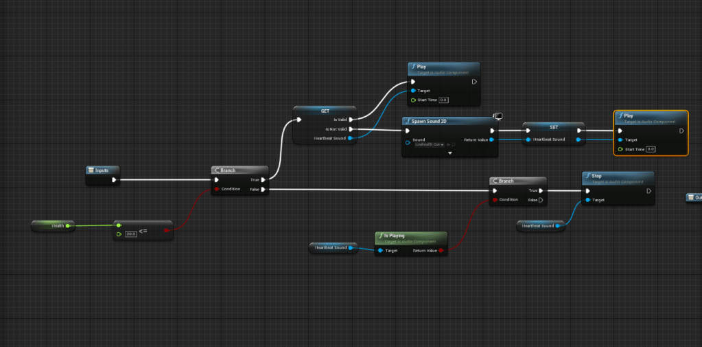 Lastly I added a heartbeat sound for when the health of the player is low. This will help add pressure to the player when they are about to die. I have taken inspiration from a lot of games that add heartbeat sounds on low health or tense situations. It does change the mood quite a bit. I tested it against the boss and I did feel more tense as I was about to die.