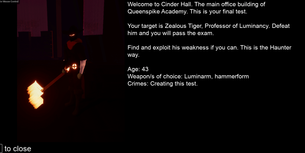 It’s always messing adding a new input, but I have been wanting to add more fluff to the world besides the items and tutorials. So I added a simple page of a “journal” that appears when the stage starts. And the player can open and close it at any time. It talks about the current “case” the player is on. This will help flesh out some of the story as well. It was tricky getting the right size, making sure it didn’t take up the entire screen space. I had to make sure as well that the journal would close at times when it should be on the screen, such as if the player gets hit or a “cutscene” is playing.