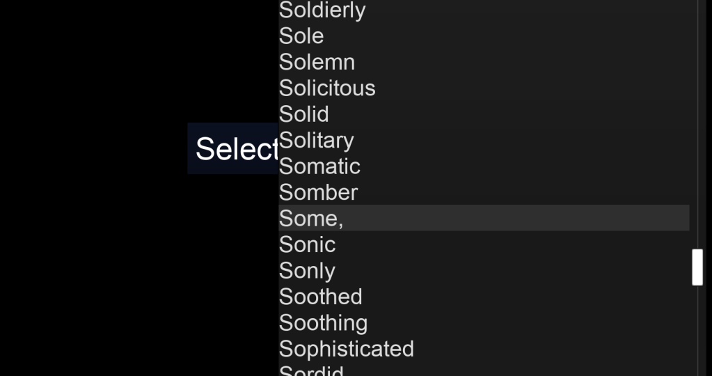 Started off with some small UI updates, make the buttons appear more pleasing, transparent when not in use. I created custom images for the Lantern images, simple shapes which work well. Will definitely update them as needed. Made sure that all the screens had buttons that brought the player back to the main options screen if they wanted to go there. I also found that one of the adjectives I had on the list had a comma for some reason. I didn’t catch that the first time I proofread the list.