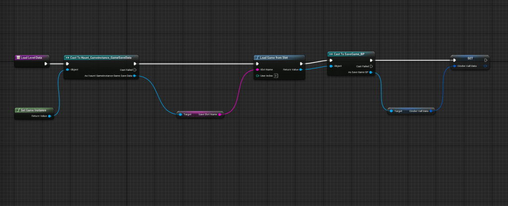 Once I finally got that out of the way I created the level that would be the base level for all my stages. I made sure it has a post-process volume along with the proper settings, it has a base struct for the level data, so I can remind myself what to put. I included the functions for saving and loading level data. As well as making sure that it has all the basic objects such as the physics object and save points which it needs to loop over. And lastly added the reference to the character that needs to be brought up when loading into the level.