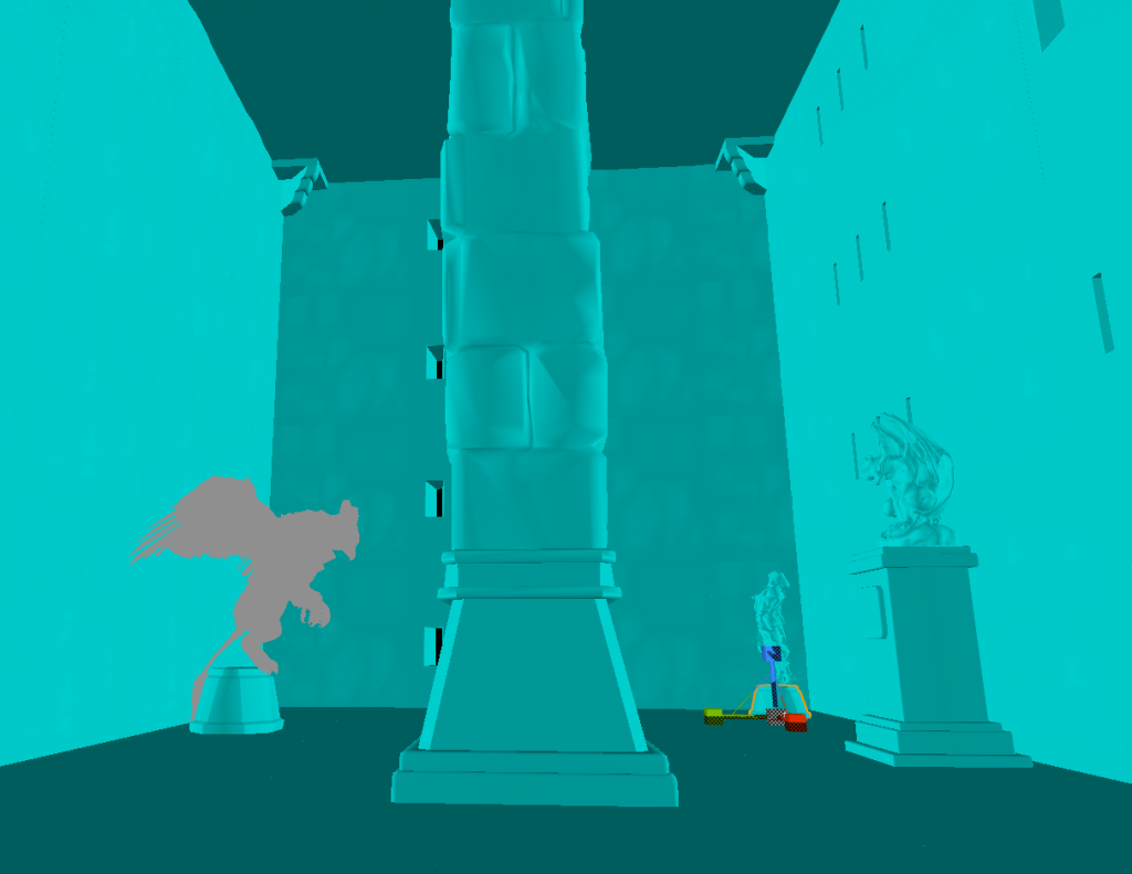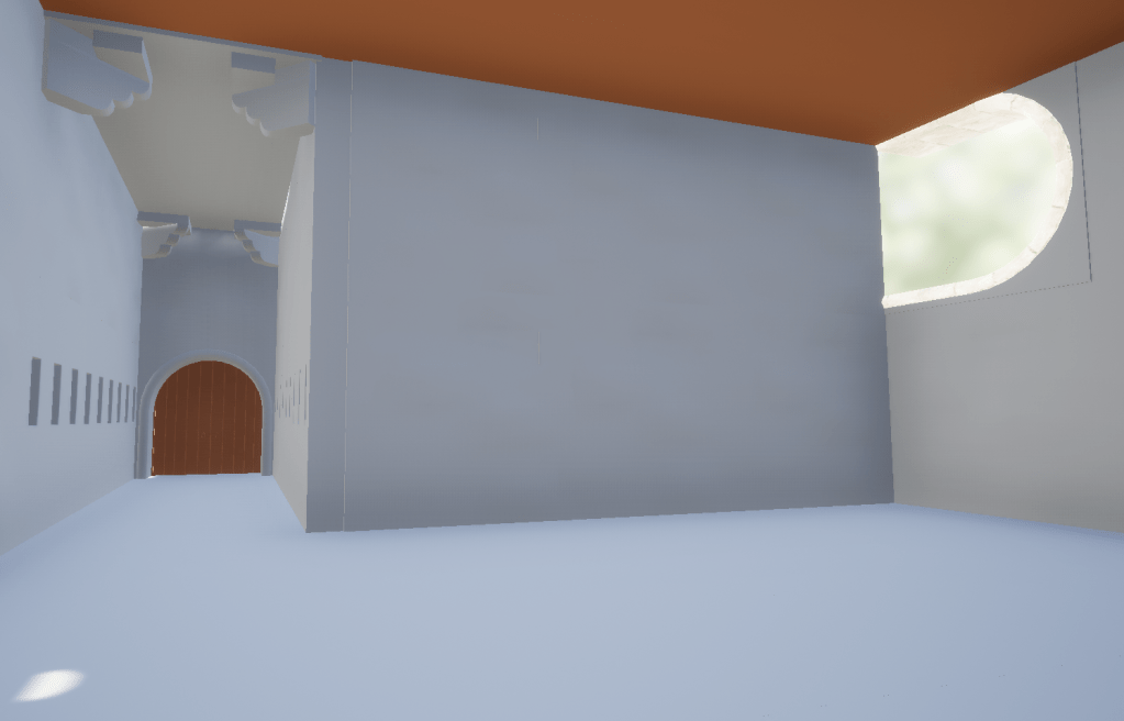 Some of the rooms felt empty without objects and other decorations so I added pillars and one room has cool statues. I am building the model away from the actual stage that rotates. That way I can update the model and turn it into a separate actor to test certain parts, and if there is anything that needs changing I can simply go back to the build of the original model.