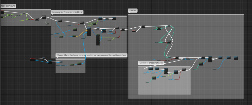 Before improving on the base boss I needed to test out of an AI can even fight on an arena that changes position. I found that there is a setting that updates the navigational mesh in real time. So it essentially tells the AI when the environment has changed. To make sure the navigation encapsulated the whole arena I made it big enough to cover the entire thing. So far the enemy can move on both sides, with a slight delay. I will try to figure a way around that, and I’m sure there will be other unforeseen issues eventually.