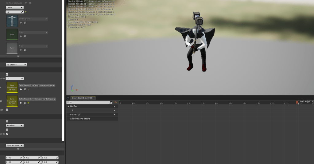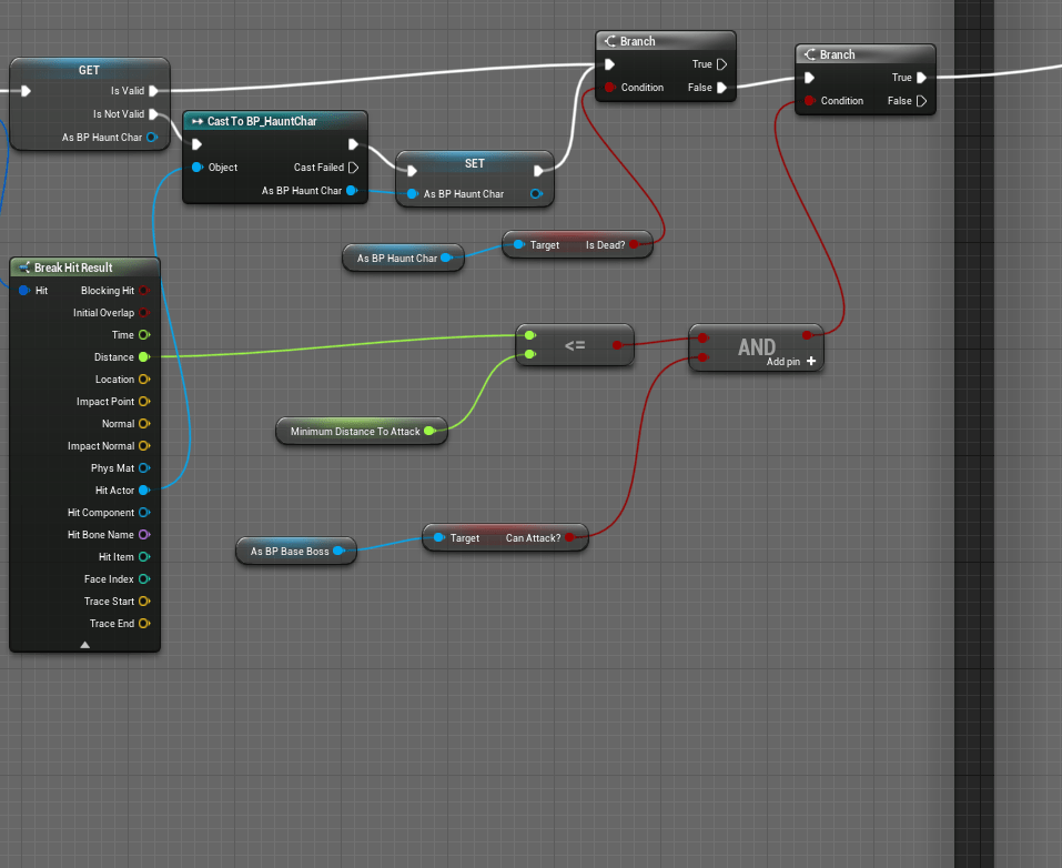 I then added more animations to the boss, adding a different impact reaction to when he is hit as well as adding a hit reaction to the animation blueprint itself (which wasn’t on the base so I put it there as well). This is important because it is a hit reaction that doesn’t interrupt the enemy’s reaction as compared to a reaction montage which overwrites any animation the enemy is doing. I used the same attack animations but mirrored to give it more variety as well.