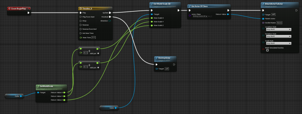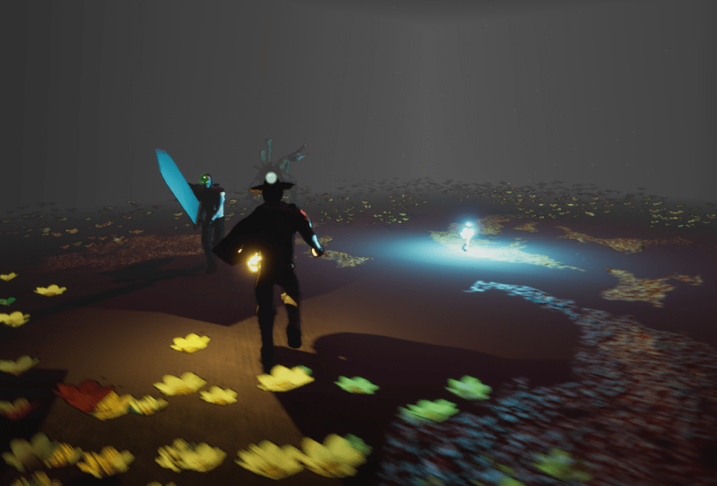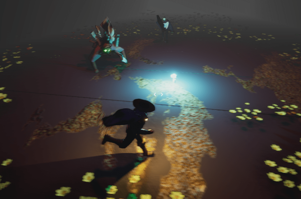 I then started on more interesting attacks for the boss, a big reason for it was so that there was a purpose to turn the arena. Turning the arena can help buy the player some time and also get away from some dangers. I did my usual attack of an object that just slowly grows. But I had a lot of other technicalities to figure out because of the rotation possibilities. Since there are essentially two sides to the arena I needed a way to tell these attacks to only appear at the floor that they are supposed to be on. Thankfully I was able to figure out that since I had two flowers I could use those as my references of which way is down. I had to tie it into the boss so it could know which flower’s location it was supposed to use. It is a rather simple method but it took a bit to figure out just to make sure it worked every time with no issues. At least so far there have not been any problems.