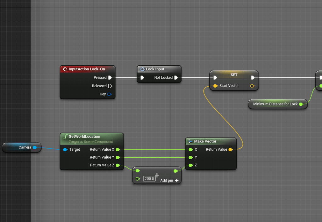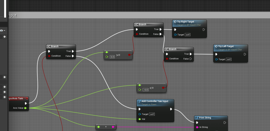 With the presence of two enemies in a single fight I had to create the ability to switch targets while locked-on, instead of having to turn it off and on to switch. I watched a video with a lot of math I didn’t understand. I simply followed his instructions and tested it out and it worked well enough. And there is a lot of math and my puny brain cannot grasp everything. As long as I can understand the gist of what it does I should be fine.