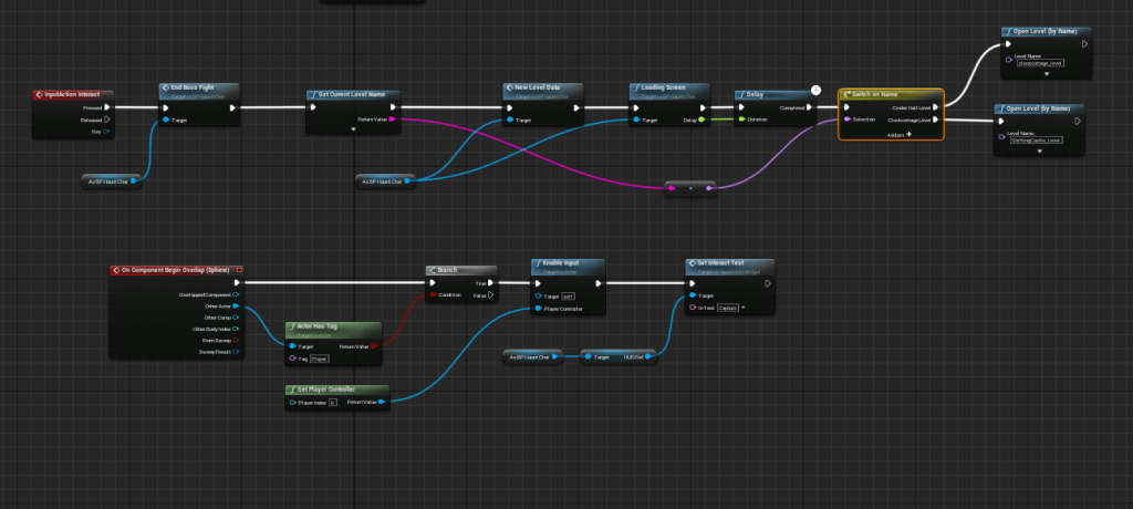 I made improvements to the flow of the boss fights as well. The level changer actor activated as soon as it appeared, now it has a radius so you have to get close to the boss that you defeated. That way if you kill it from far away you have to get close to see the prompt to “capture” them. Previously it said “knock out,” which doesn’t make sense for some of the bosses who would be lying on the floor.
