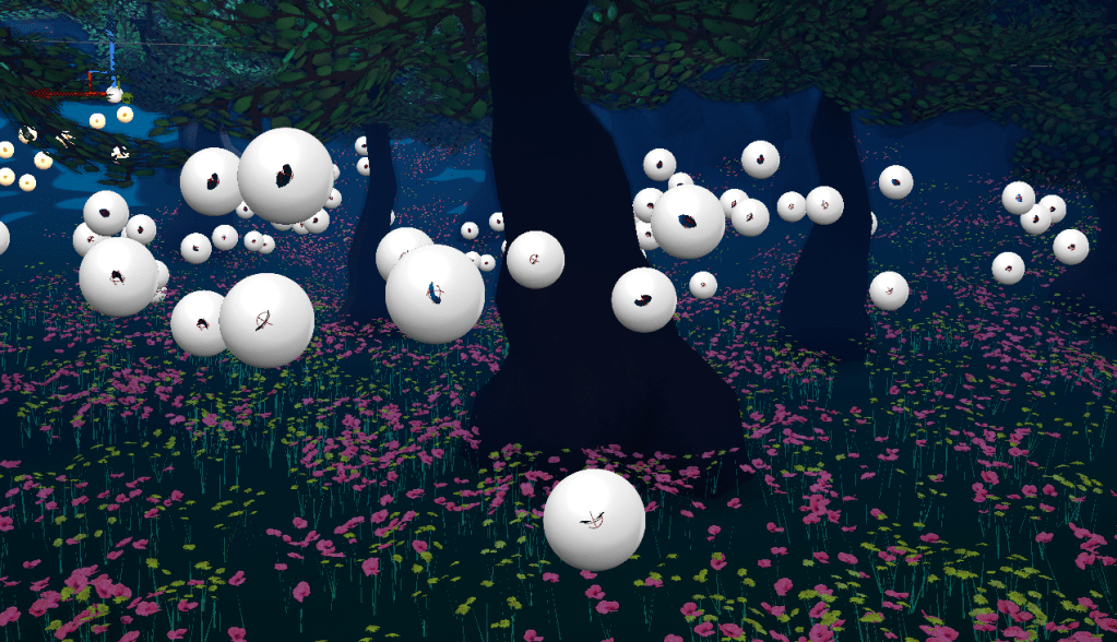 While testing the game I came back to the second stage which has a lot of areas I want to improve. The environment itself is quite large and there is a lot of empty space I can still use. I added floating leaves suspended in the air which I think gives a nice effect to the level. I added hundreds of them and was worried it would take a toll on performance. I made sure they casted no shadows and despite there being a lot of them, there seemed to be no noticeable dip in performance. I added them to most trees and it looks very nice overall.