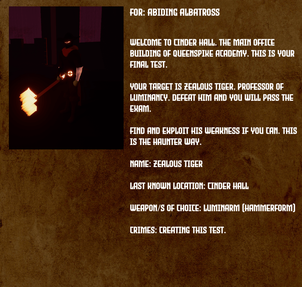 There are tons of tiny improves I still wanna make. I still have to see if there’s a way I can make the name selection have a search functionality so you don’t have to scroll down to far the list to find the name you want. I still need to make improvements to some option menus. For the stages I will check if there is more I want to add to deepen the story as well.
