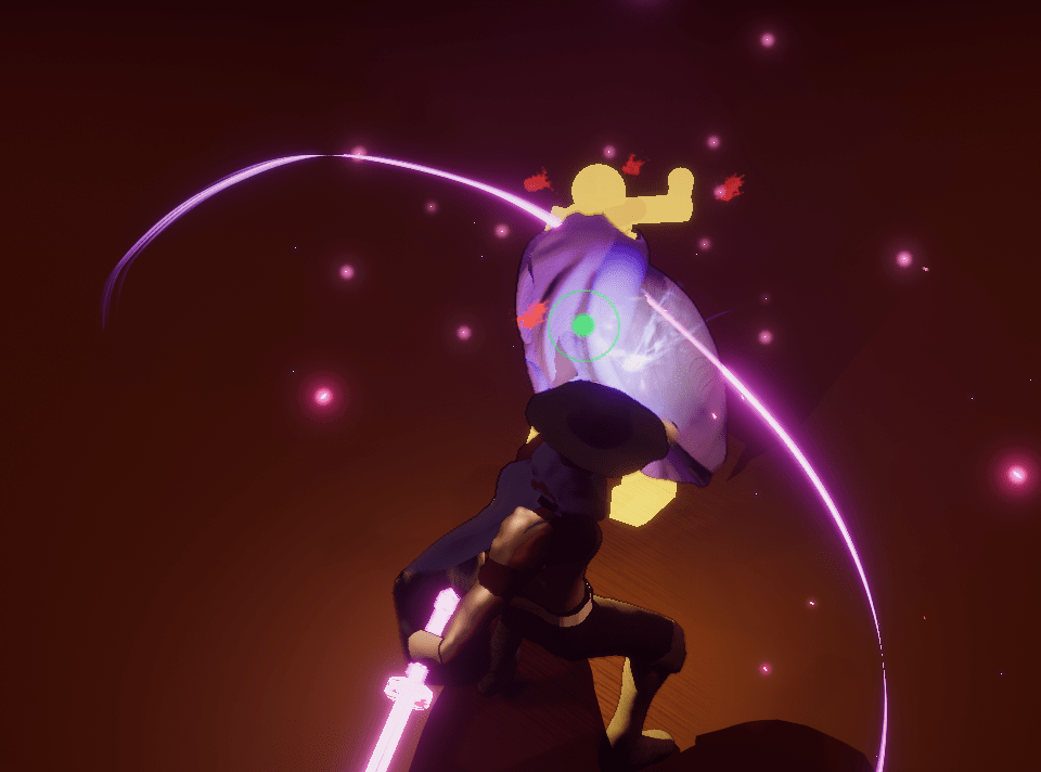 I had to make a material, decal material, and a particle for all of it to work. I tweaked it so it wouldn’t shoot out a ridiculous amount of blood.