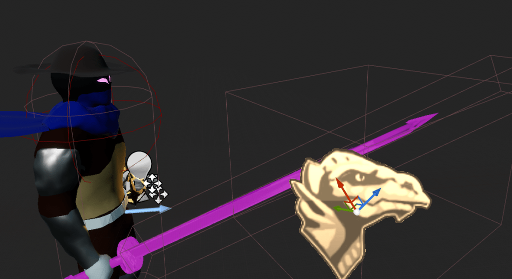 The hitbox of the sword still felt too small so I made it really big to make absolute sure it will hit any enemy. I have no worries with the boss missing the player, at least they are safer that way. Unless they look like they’re really supposed to hit. For the player the melee should not really be a matter of aim but of distance.