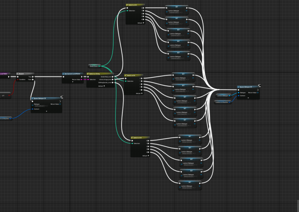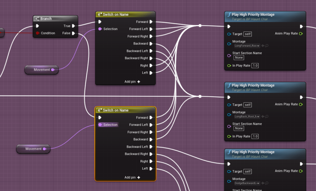 Once I was done adding the new tutorials I recorded the new voice lines and added them into the function. It is looking quite large but that isn’t an issue for me. I found an issue with the dash that I fixed. If the player wasn’t locked-on they would automatically dash forward even if they weren’t trying to go forward. I want the default direction of the dodge to be backwards. It has to feel natural and intuitive. I don’t want the character to do something that the player doesn’t expect.