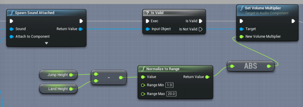 I thought I fixed the sound of the jump but it was still iffy. I instead created two variables that tracks the height the player is falling then the height they land. I subtract the two from each other to get the multiplier for the jump sound. It works better and more consistently than anything else I have done so far.