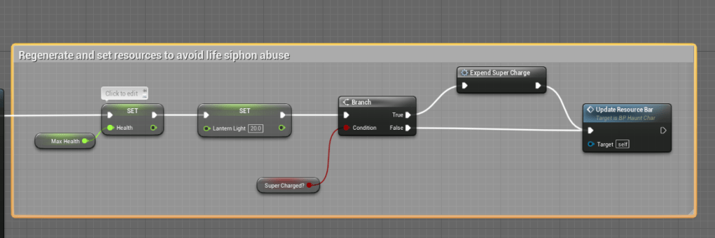 The healing and life siphon powers were a bit too slow so I sped them up a little. Since the heal is expensive and limited, I don’t want to make it too hard to use it in a pinch. Then I made sure that the player will fully heal when they saved the game. It didn’t occur to me to do it before because there hasn’t really been danger of the player getting hurt before a fight. But I may add more dangers eventually and the player can also hurt themselves. I also made sure the players can’t abuse this by regenerating their Primelight, so I reset the resource bar to its original state.