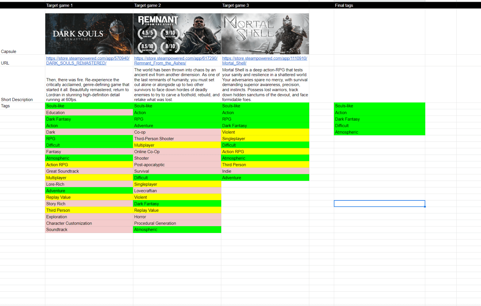 From the course I learned what tags were best to use. Using the previous research I did from the similar games I used the tags that are present in each game and have those as the top tags. The top five are the most important. And the other tags I should include need to be popular as well but still relevant of course. Apparently having an indie tag isn’t a good thing because it doesn’t actually say anything about the game itself. I never thought of it that way but he has a good point. Other tags all have things to say about the game, an indie tag is trying to give a sense of the amount of people working on it I suppose. But when I’m looking for a game I am more concerned with gameplay.