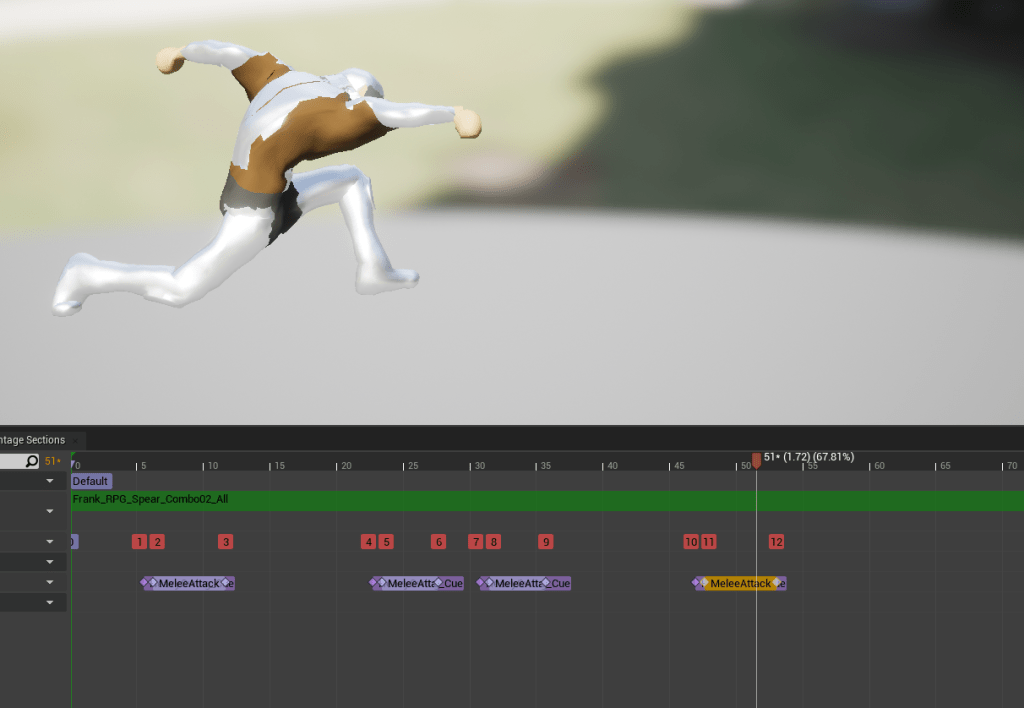 Though I did accidentally copy the wrong values into a certain variable so I had to go back and find the correct value. It wasn’t too hard but it was frustrating. I gave the boss her own footstep effects and wit the spear in the perfect position it was time to add all the attacks.