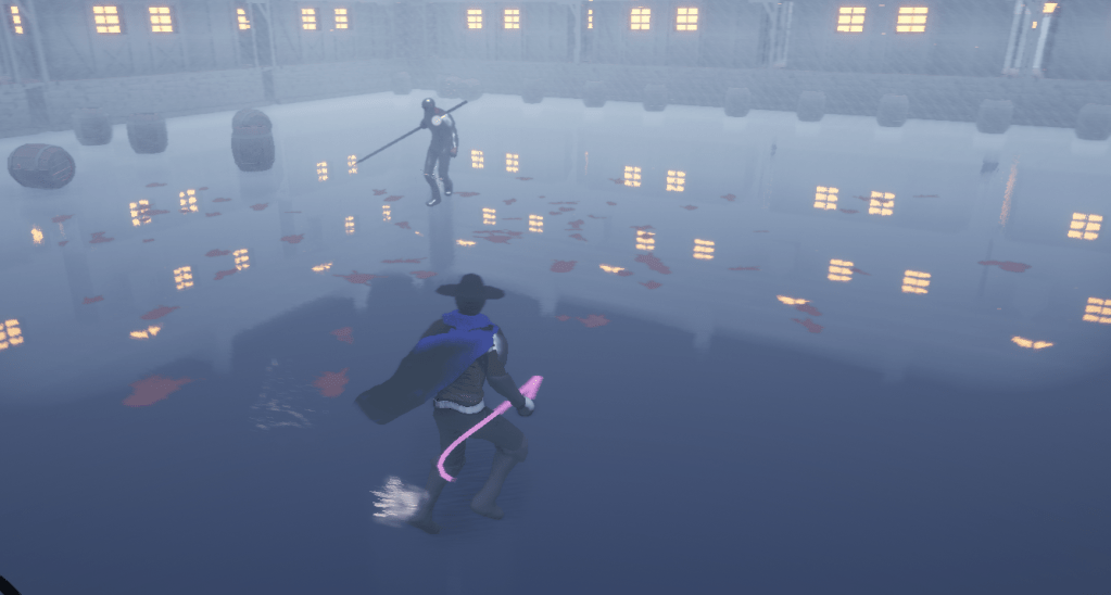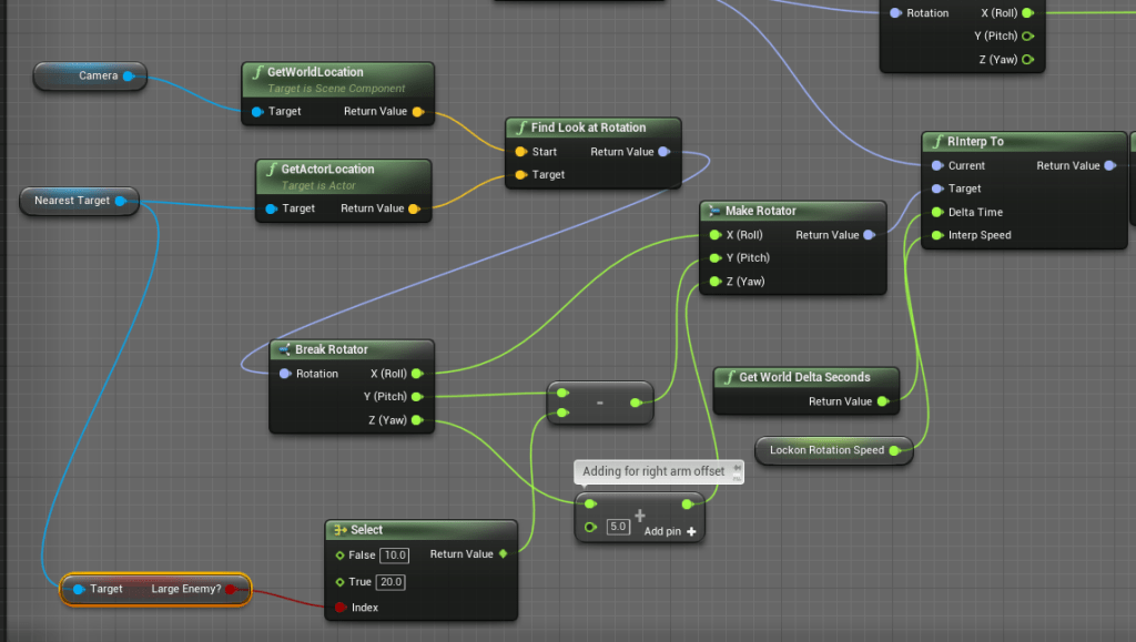I learned a lot about how to improve the combat in the game. First off I reduced the size of the target image on the enemy when locked on. Its previous size was a bit distracting. I was able to defeat the boss but it is very difficult and that made me rethink a lot of things such as the player’s own progression with stats and such. The camera’s position when locked on made it hard to see the boss. So I added a bit more pitch to make it tilt a bit more. Now it is easier to see what the enemy is doing. This is important for dodging, parrying, etc. Since I changed the camera angle when locked on I had to change how the projectile fired from the player as well. Instead of firing from the rotation of the camera I did it from the capsule. It is better this way than how I previously had it.