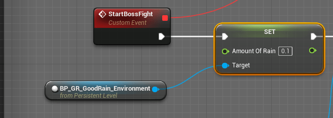 Went through the tedious task of adding more effects to the boss’ attacks. Along with making sure she made some footsteps when doing certain actions. The trails aren’t exactly where I want them to be so I’ll fix that soon by adjusting the position of where the trails start. While testing the fight I found that the rain was adding to the difficulty because it made the screen so busy. I don’t want it to hinder the fight in any way so I decide to stop the rain once the player got inside the fight.