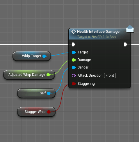 Today was a great day for the whip as well. I added a new output on the interface that the whip calls and made sure that objects scaled with the player’s damage as well. I was previously setting the damage of items on the fly, which was a bad idea to begin with. I changed the name of some variables to clear some confusion that I get because there are some values that I set and some that I don’t.