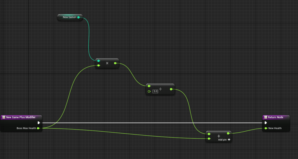 Since I was working on a lot of scaling for the game I decided to already add some logic for new game plus. I don’t know exactly how “replayable” the game will be, but at least I can prepare for anything looking to play it from the start. So I added a new game plus counter to the save file and created a function that would adjust a boss’ health accordingly. I didn’t spend too much time testing the scaling of the health but I landed on a number that felt decent.