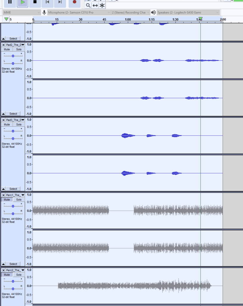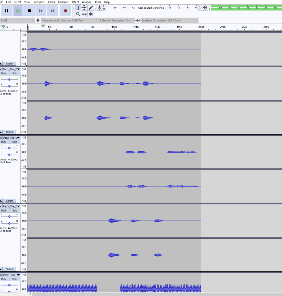 I’ve been thinking for awhile about how I want to create the different songs for each fight. Since I had separates tracks for the music I commissioned I could mix and match the various tracks. I had a small idea of which instruments would be for which stages. I started by laying the tracks out on audacity and muting different ones to see how they sounded together. The bass line is probably the most important part of the song. After experimenting I found different versions that I wanted to use for the first, second, and third stage. I plugged it into the levels and it sounds awesome.