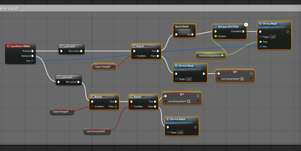 After some thought I removed the strong attack for the sword. It was only usable when the lantern was enhanced and even then the hammer was a better choice if ever the player wants a heavy melee attack. Unlike the whip which can be used to push and pull at any time, it didn’t feel right to have the sword has an input that required being held. So I deleted the entire mess so I had made. It’s good to clean up some of my earlier work.
