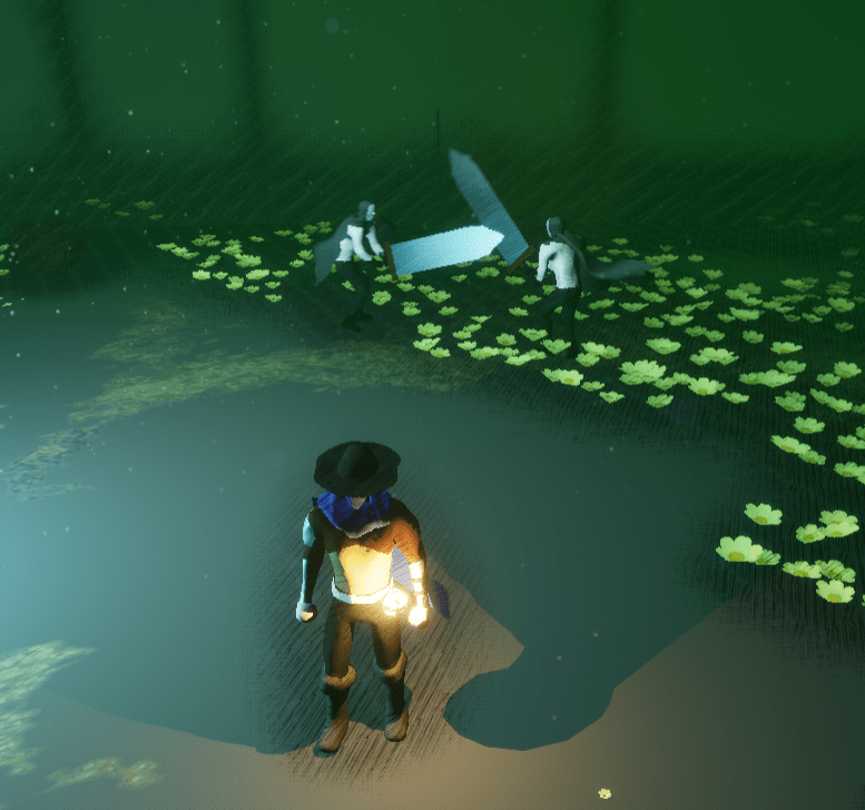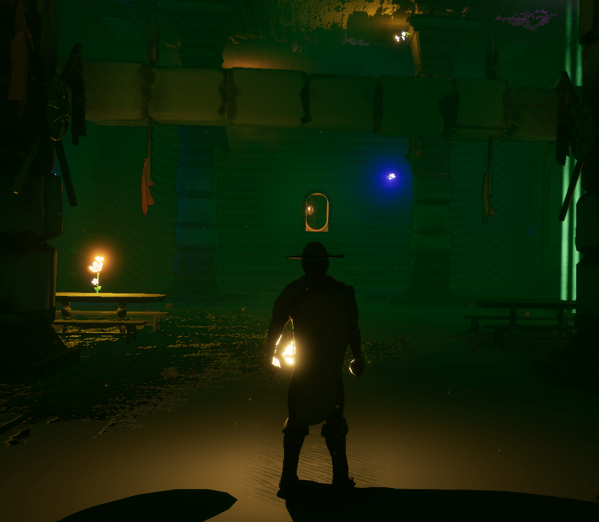 For the previous level I’ve been using the fog from the engine instead of the custom fog I made before. So I did the same for this. I removed the fake fog and put a green exponential fog. As it did for the other stages it has become less dark. This means I could lessen the brightness of the flowers and also I lowered the default intensity of the lantern. The area looks more menacing with a blanket of green. I even changed the god rays to reflect the new color of the outside.