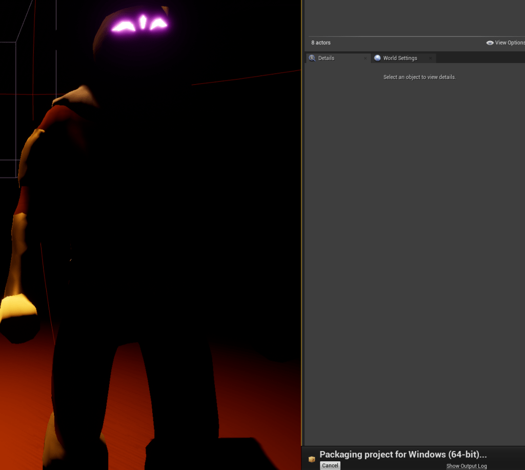 After I was able to get that working I wanted to see if I could bring back something I had in the game months ago but removed because of the packaging issues. It was the apex destructible plugin that created fractured meshes for objects. It made the objects break in awesome ways and I hated removing it. I enabled the plugin, put a destructible mesh in the game, and then I packaged the game with cross fingers. It packaged perfectly. The next step was replacing the code within the objects to make the destructible system work with it then update all my objects across the levels to show the right fractured object. It didn’t take too long. Thankfully I don’t have that many varied objects per level. I could easily edit multiple at a time.
