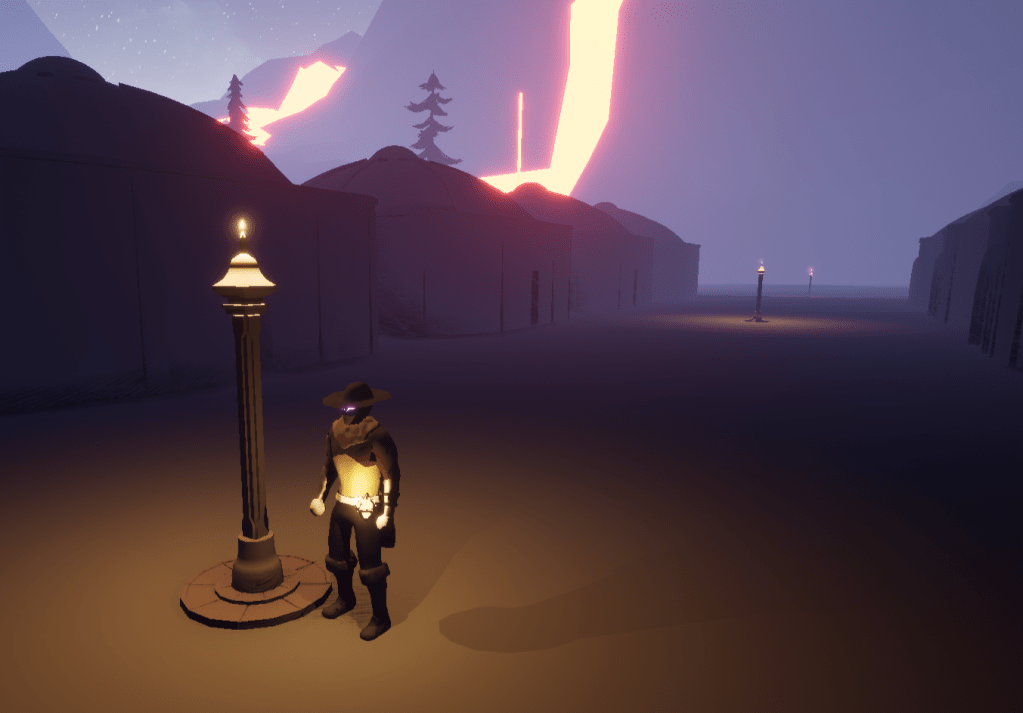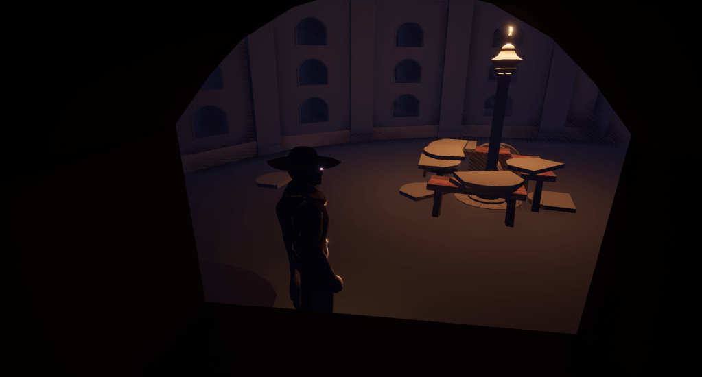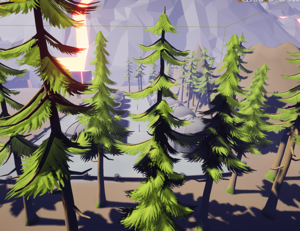 Copied the buildings I made and decided to go with a number of 10. That seemed to be a good count without being too few or too many. After that I added some of the lights in between the buildings. It was looking too open so I added small barriers around the vicinity to make it appear more organized. Everything was coming together nicely to create a small space that felt interesting to explore. The surroundings still felt empty so I added the trees I had chosen a few days ago. I put them in the foliage tool and made sure they could block the player but not the camera. It has been awhile since I used the too l but I remembered most of it. It is a nice feature to be able to add a variation in size for each tree “planted.”