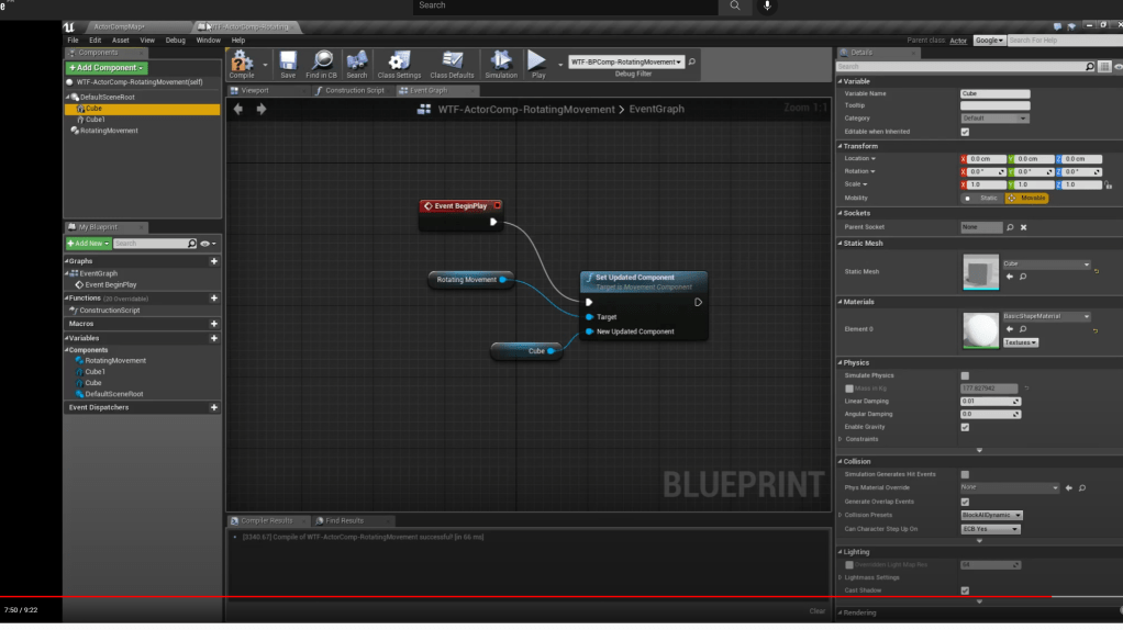 I learned that a rotating component can target a specific component on a blueprint. This means it doesn’t have to rotate the entire thing. This was helpful in my newest update because I was considering creating a new blueprint, but that would have been too much extra work. The rotation happens on floating gems.