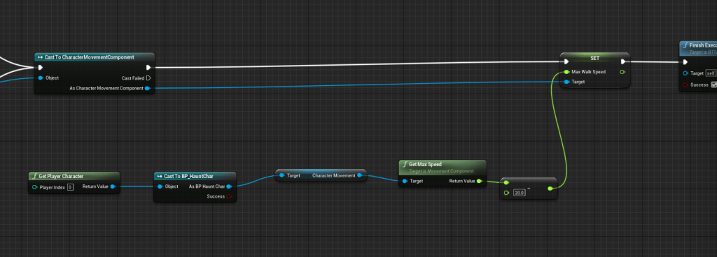I was not happy with how the arena of the boss fight looked. It was a nice idea to have it up in the sky looking down at the flowers and tombstones. But in the end it was a boring glass box. The feeling of fighting there wasn’t what I wanted. I scrapped the entire arena along with some stuff connected to it. I shifted the necessary objects down to the graveyard below. The fight will take place here instead. I needed to add a wall to the side so the player couldn’t escape. I wanted the wall to not be present during the main exploration of the level, but I couldn’t change its collision during runtime. It has something to do with how the wall spline was built.