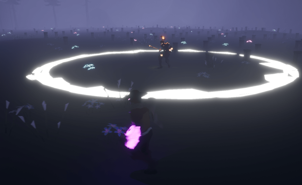 I added notifies to the boss’ walk animations so it would make sound for each step. Nothing really feels concrete without sound. I also gave him a nice staff/weapon with a lantern on the end of it. The boss has a thing for lanterns so why not go all the way.