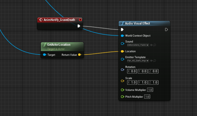 After some fighting, I could finally kill the boss. Then I figured it needed a proper death sound and effect, so I found a great sound from the hundreds of files and slapped it on. The parry effect seemed lacking as well and I only noticed when I checked it that I set the visual effect scale to 0.0. Effectively it wasn’t showing any of the visual indicators that a parry was successful. I increased the scale and it feels much better.