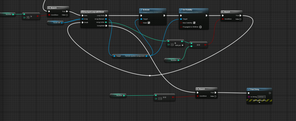 Finished up the puzzle for the first part of the stage. I added necessary effects that required some a loop with break and created an array of the particle emitters. There was a cool portal effect I placed as well that will transport the player to the outside.
