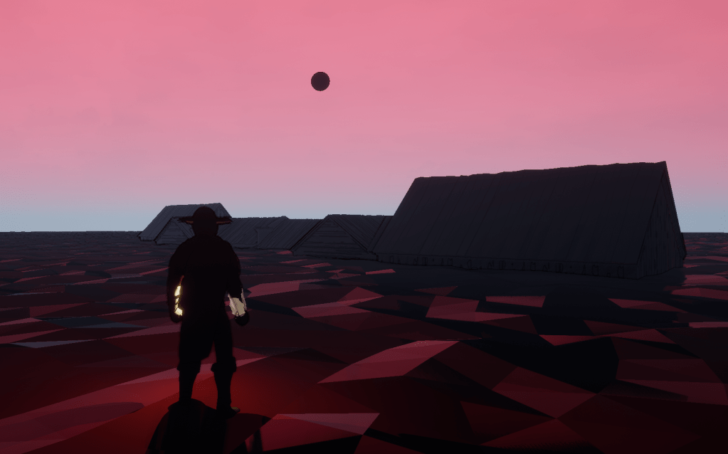 While messing around with the water asset I found that if I removed the emissive value on the material and edit some of the parameters I could create an awesome-looking floor for the level. I edited the material and made an instance for the red water. Underneath it is an invisible plane that I had to make sure was at almost the same level as the water because the camera could peek underneath. It isn’t too high so the character’s feet still get submerged.