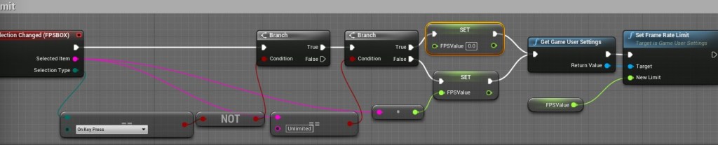 There wasn’t a setting in the game that could set the FPS to unlimited because I didn’t want to trouble myself with an option that wasn’t a number. To get around this I made sure that if the selection was “Unlimited” it would reflect on the box. In Unreal when the FPS is set to 0 that means the frames will be uncapped. I hadn’t implemented this previously because I didn’t think it was necessary. Now I feel that some people may want this option, so I included it just in case.
