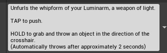 I hadn’t included the HAUNT logo anywhere in the game so I put a decal of it in the first level. It is a bit hidden and the entire thing can be hard to see without jumping. The tutorial is probably one of the parts that have gone through the most changes, and it will probably continue to be improved up until the game’s release. I made it clear that that whip cannot be held down and released. The holding of the input will just cause the action of grab and throw.