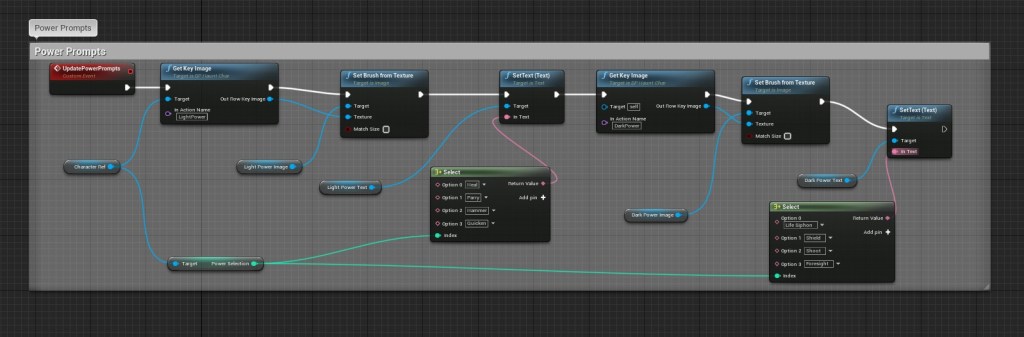 Added more UI elements that will remind the player of the inputs for the powers and what they do. I wanted a relatively simple UI with no input images at all, but the powers themselves change with each lantern “setting,” so I thought it would be better if I displayed reminders. After trying a lot of different looks I went with an image, text, and a background beside the main resources. I like the way it turned out.