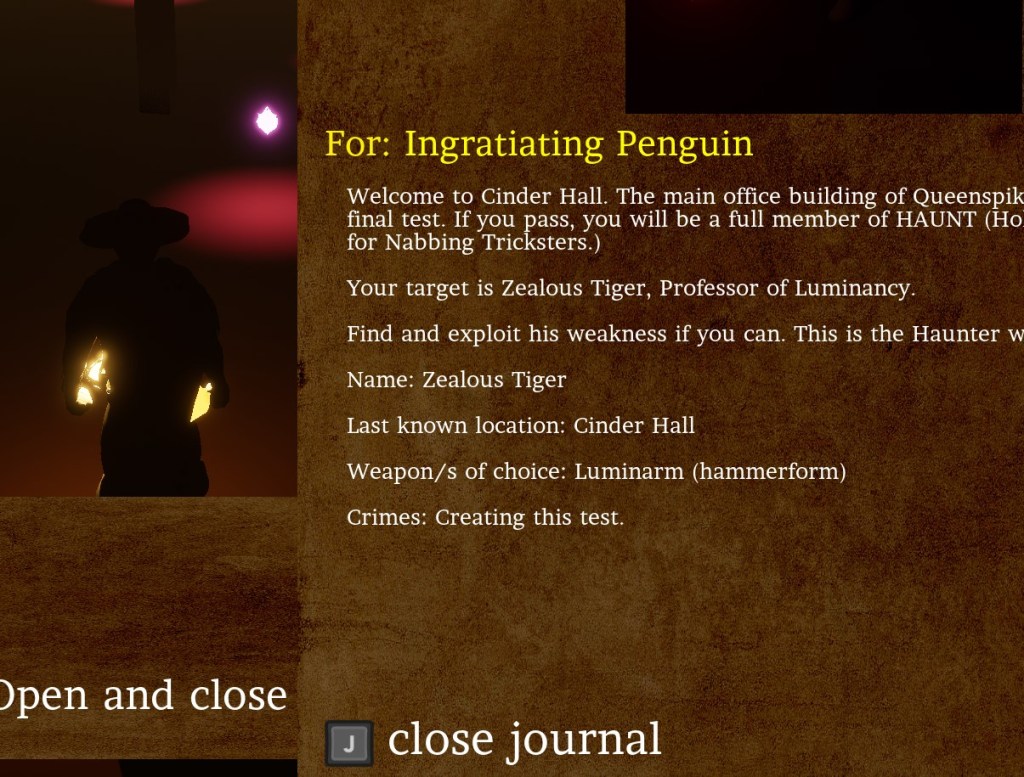 I then updated the journal entries so they would appear over most HUD elements. During the tutorial, it wouldn’t cover the message, but now it does which shows its importance.