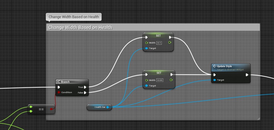 The sound of moving objects was weird sometimes so I made sure to attach it to the object rather than simply spawning it at a location. The sound should now move with the object. The health circle always bothers me, and to show the player they aren’t at full health I made the width of the bar thinner if the health is any amount below the max.