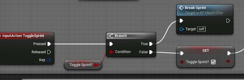 As long as I am careful and do the right testing, it should all work out. I was able to add a new input that allows the player to toggle sprint instead of holding it down. Also, thanks to my testing the sprint I found another issue. There is a lean on the character when sprinting but if you lean and stop the player stays tilted. I had never noticed this before. The fix was to remove the lean if the player is not moving.