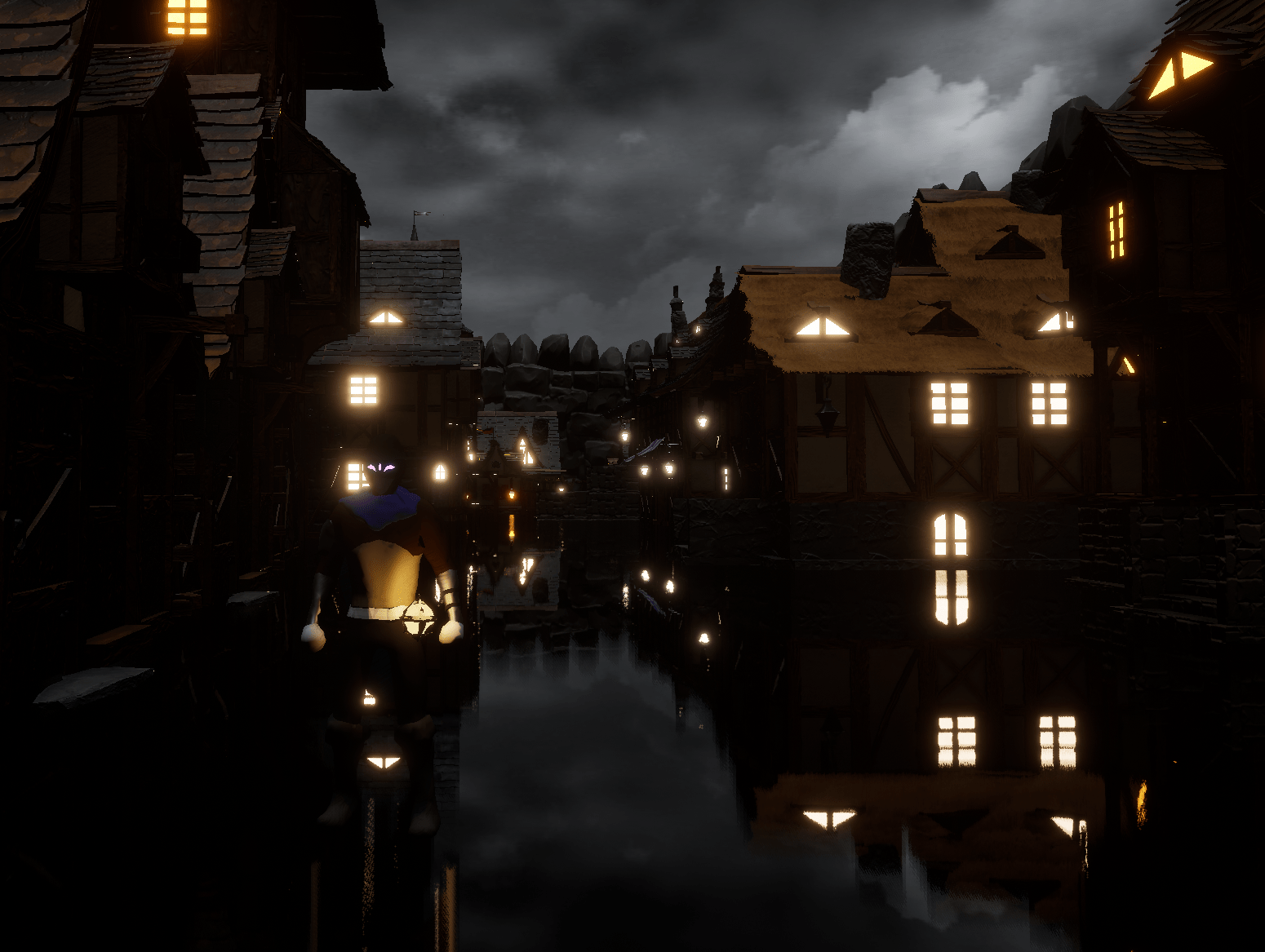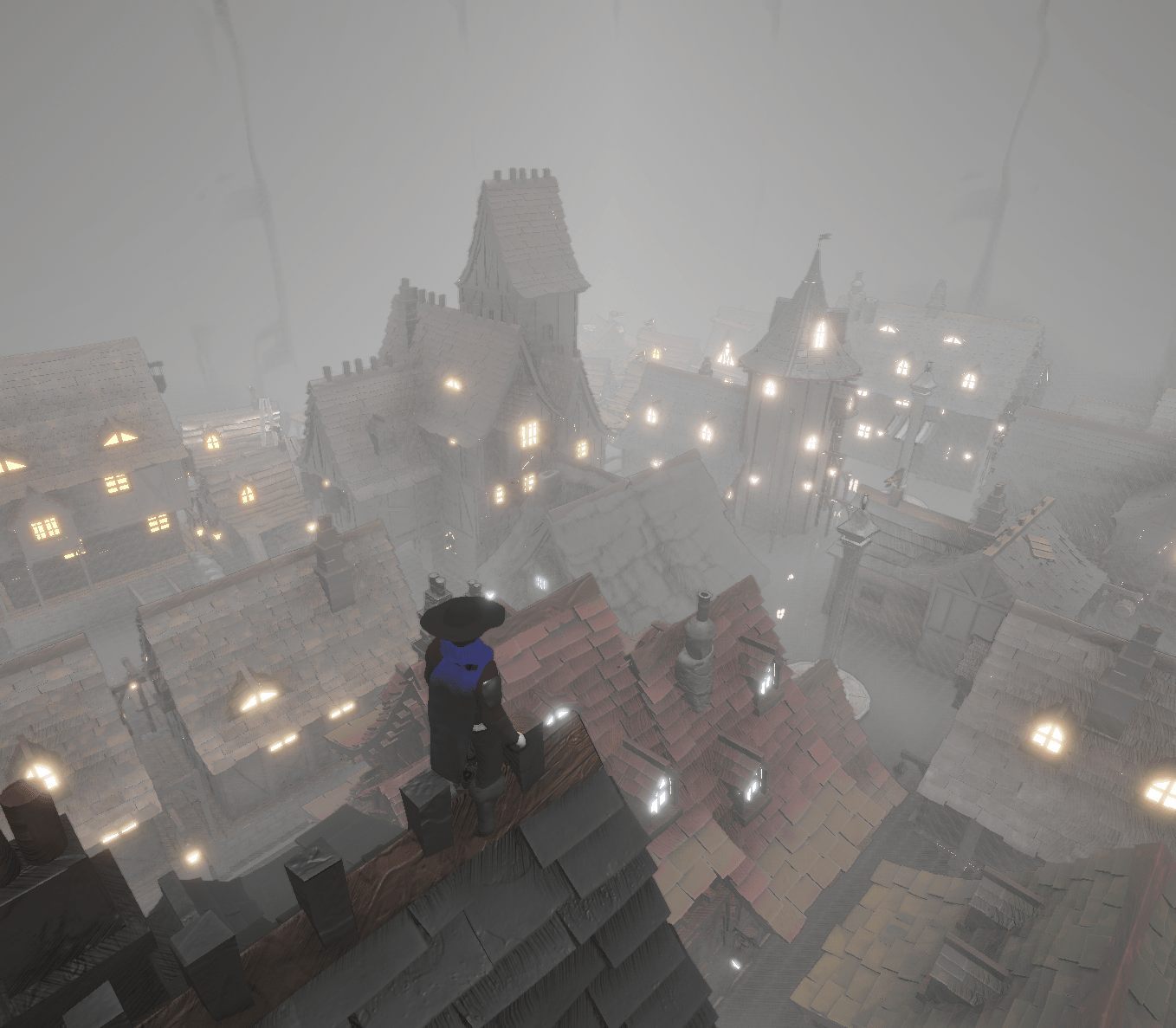 Most of the buildings roofs have a very steep angle so I found a variable in the character movement where I could increase the angle of the walkable surfaces. It worked fine and it became no issue to traverse the small town square I made. The next problem was that the character stood straight up,Continue reading "Twinkle twinkle"